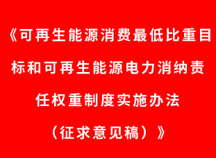 《可再生能源消费最低比重目标和可再生能源电力消纳责任权重制度实施办法(征求意见稿)》公开征求意见